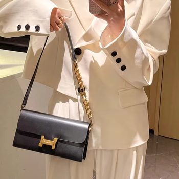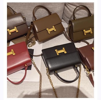 本革レディースハンドバッグ到着トレンディなチェーンディテールスクエアクラッチエレガントで多彩なテクスチャクロスボディショルダーバッグ